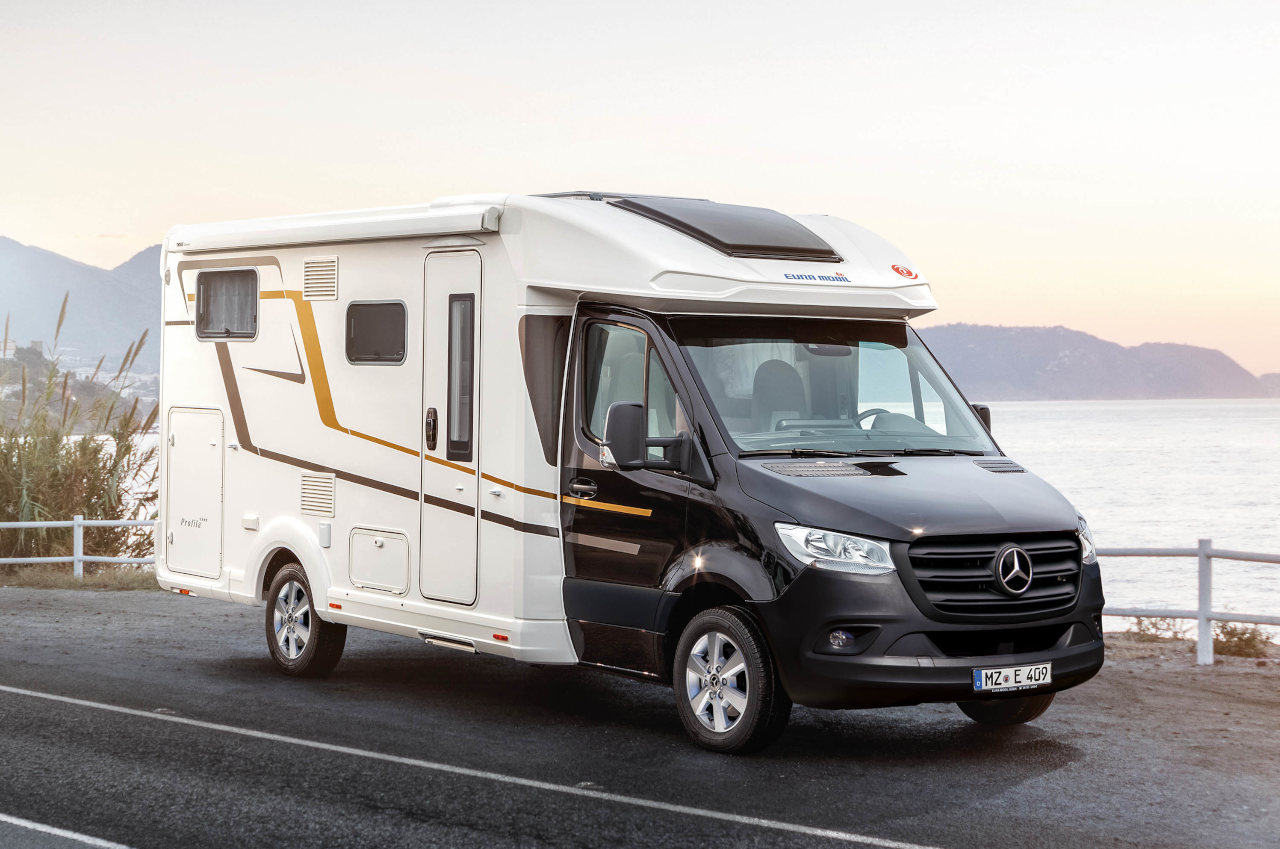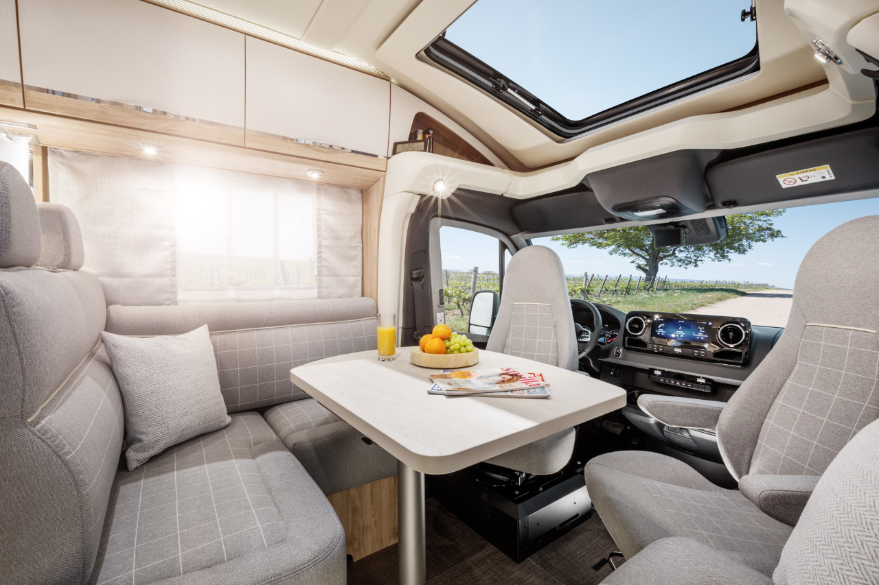 Das Modell K4 bietet in allen Bereichen äußerst großzügige Platzverhältnisse und eine sehr wertige Ausstattung. Wohnraum-Klimaanlage sind serienmäßig an Bord.