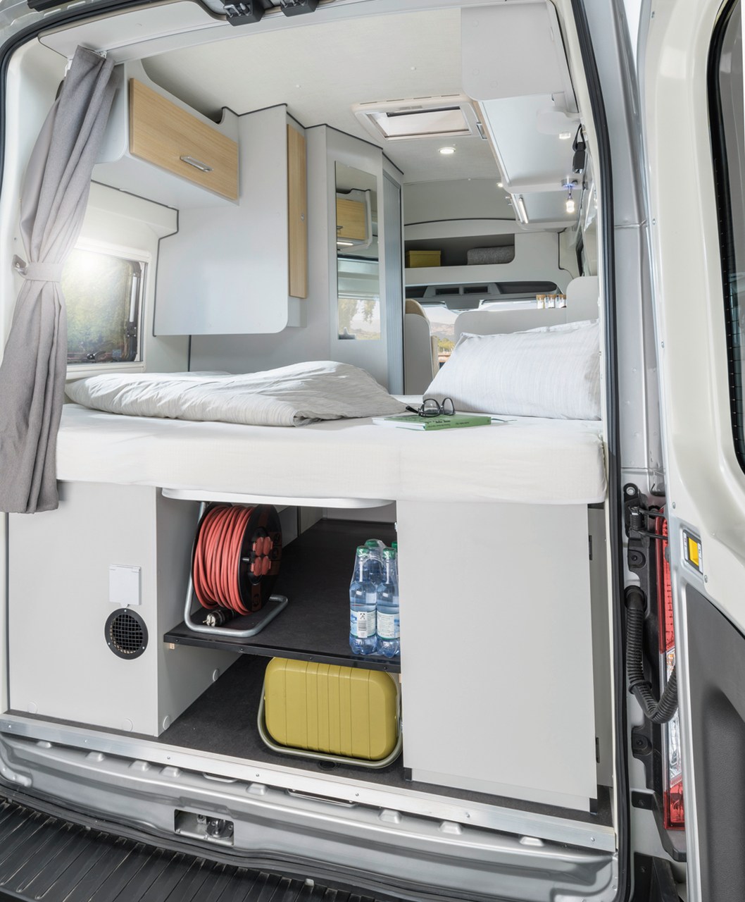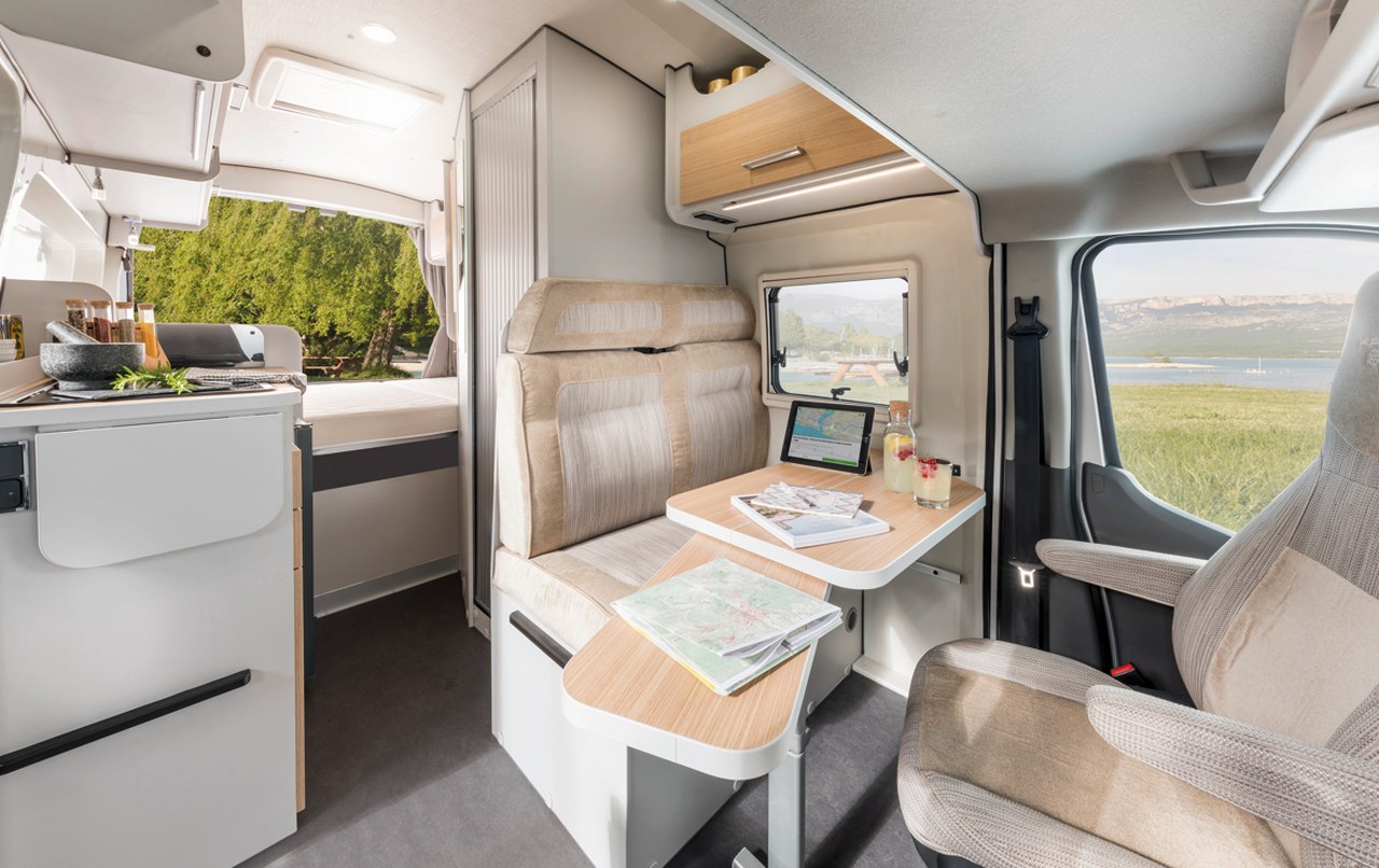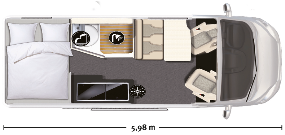Unser V5S ergänzt den bewährten Kastenwagen-Grundriss mit quer angeordneten Doppelbett im Heck um in dieser Fahrzeugkategorie sonst außergewöhnliche Ausstattungsdetails wie Allradantrieb, Anhängerkupplung und Sat-TV.
