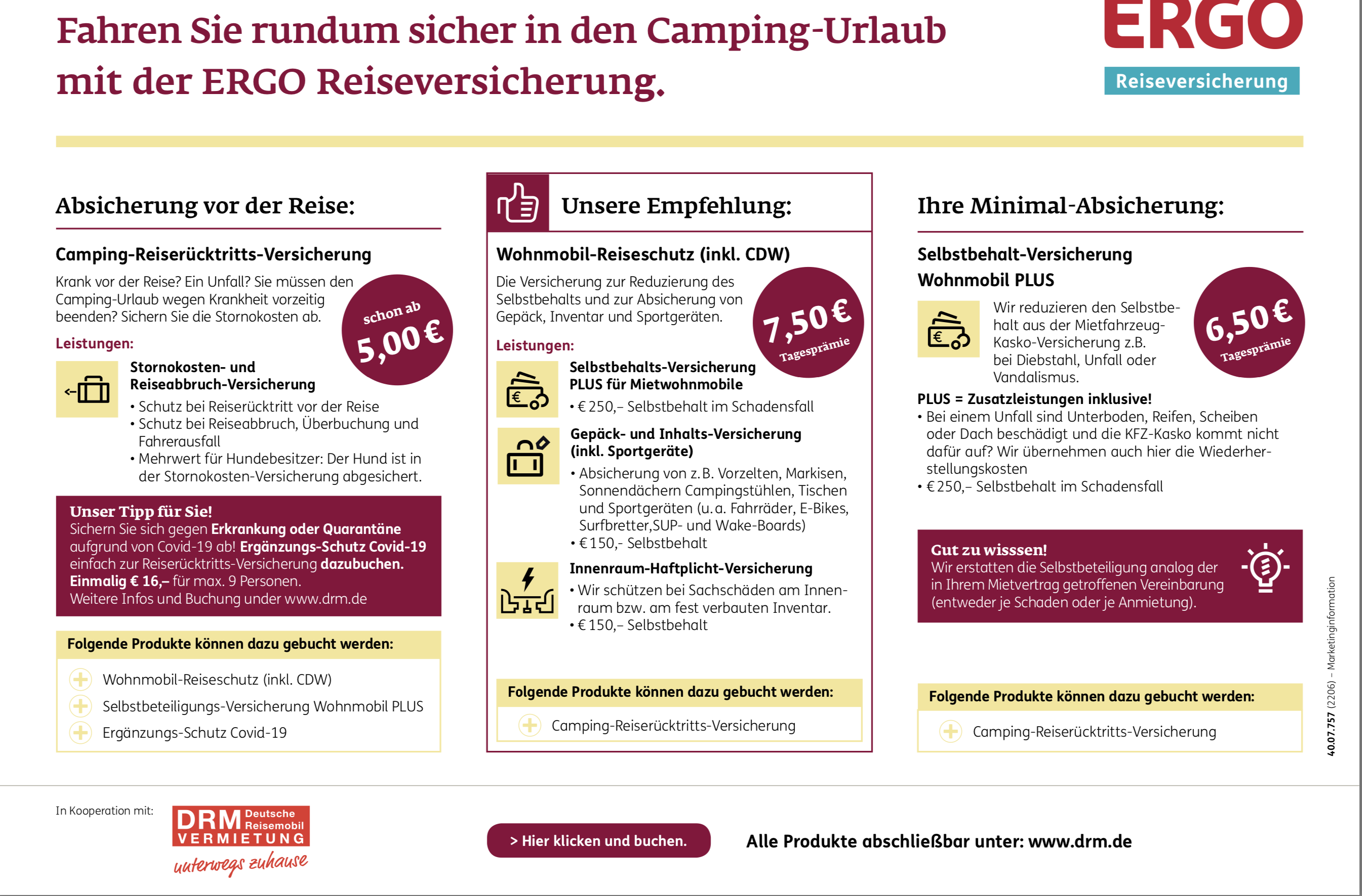 Darüber hinaus bietet die ERGO Reiseversicherung verschiedene Versicherungspakete für Ihren entspannten Wohnmobil-Urlaub