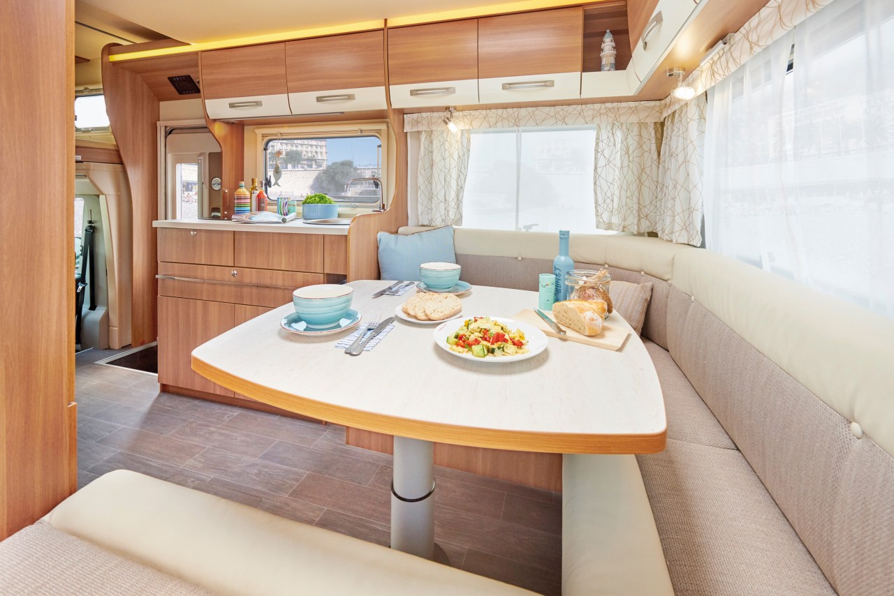 Der F2 überzeugt durch seinen gemütliches Raumkonzept mit der großzügigen Rundsitzgruppe im Heck des Fahrzeuges, bei gleichzeitig kompakten Außenmaßen.