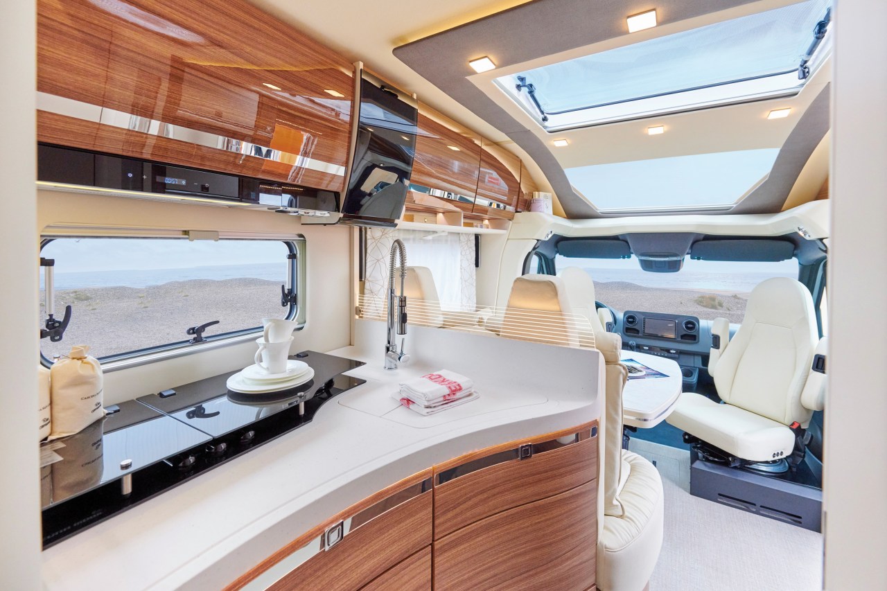 Unser Modell K5S bietet Ihnen in allen Belangen ein Höchstmaß an Komfort und Luxus mit einem Fahrzeuggewicht von über 3,5t. Angefangen beim Mercedes-Benz-Chassis, über die Qualität und Anmutung der Ausstattung – Wohnraum-Klima und Sat/TV sind natürlich inklusive - bis hin zu den äußerst großzügigen Platzverhältnissen. So wird Campen zu "Reisen auf höchstem Niveau".