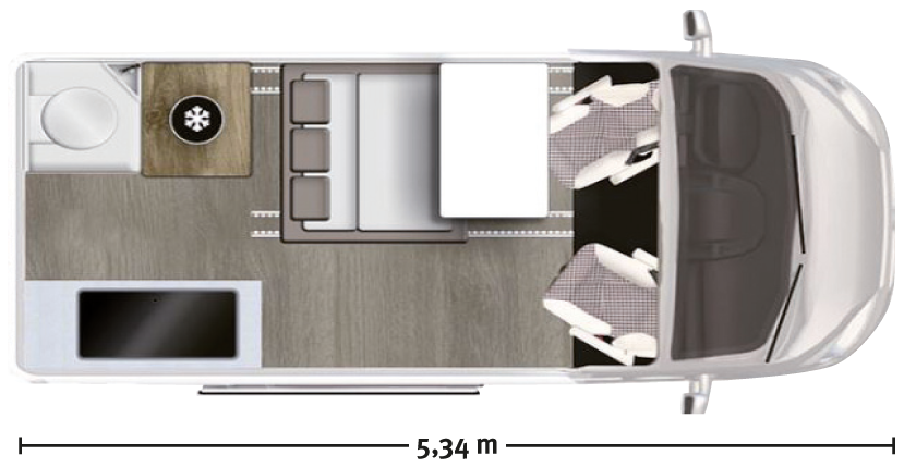 Mit seinen kompakten Ausmaßen und einer kompletten Ausstattung - inklusive WC und Duschgelegenheit - ist unser V0 der ideale Begleiter, wenn Sie Wert auf ein extrem wendiges und autarkes Fahrzeug legen, aber gleichzeitig in Sachen Ausstattung keine Abstriche machen möchten.